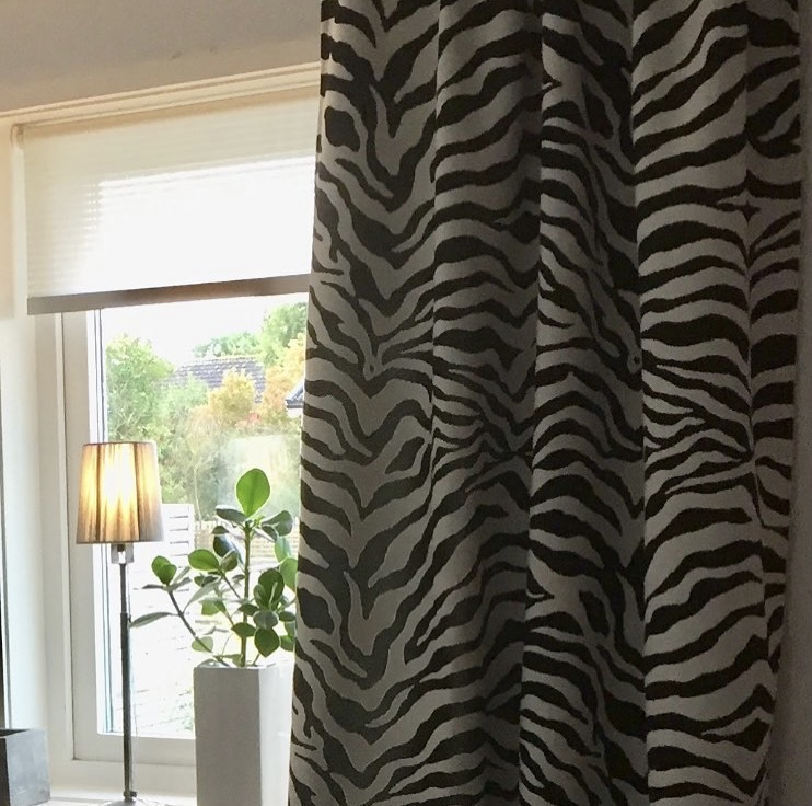 Här sydde vi en enkel gardinlängd i detta fina zebratyg, det är så bra för det tål solensstrålar bra utan att solblekas  Beställ tyget här