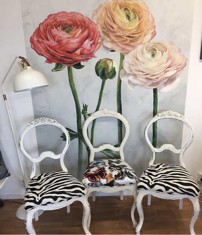 Här har vi några rokokostolar i detta läckra tyg