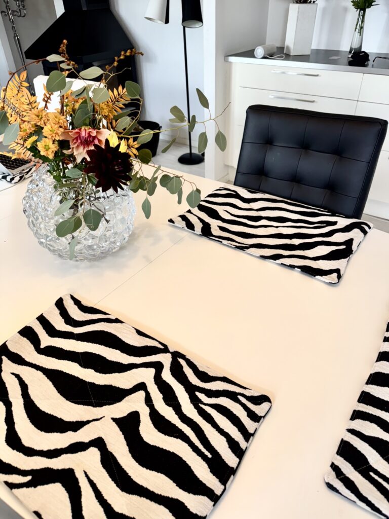 Tyget passar verkligen till mycket, jag har sytt upp kuddfodral och även jättefina bordstabletter.  Beställ tyget här